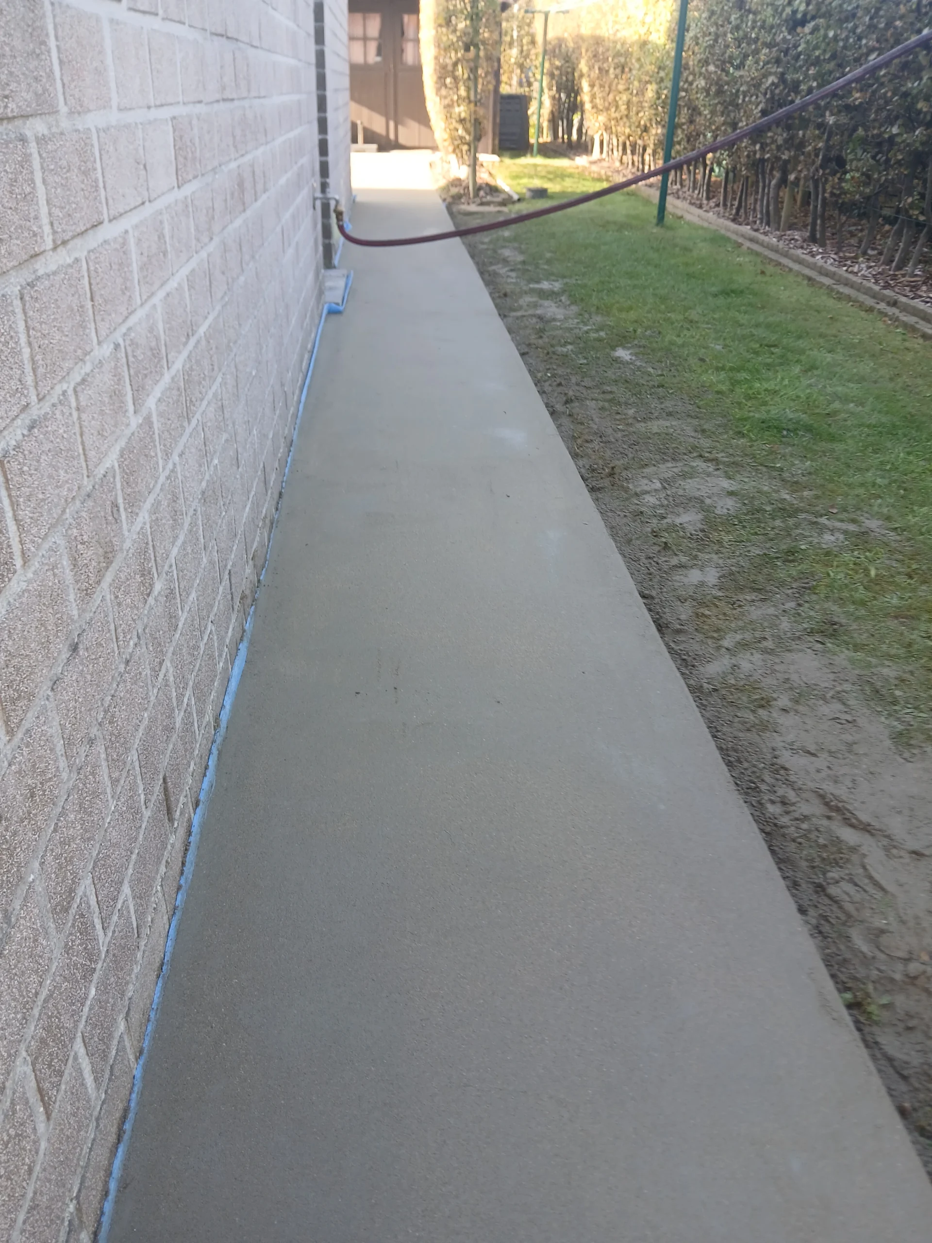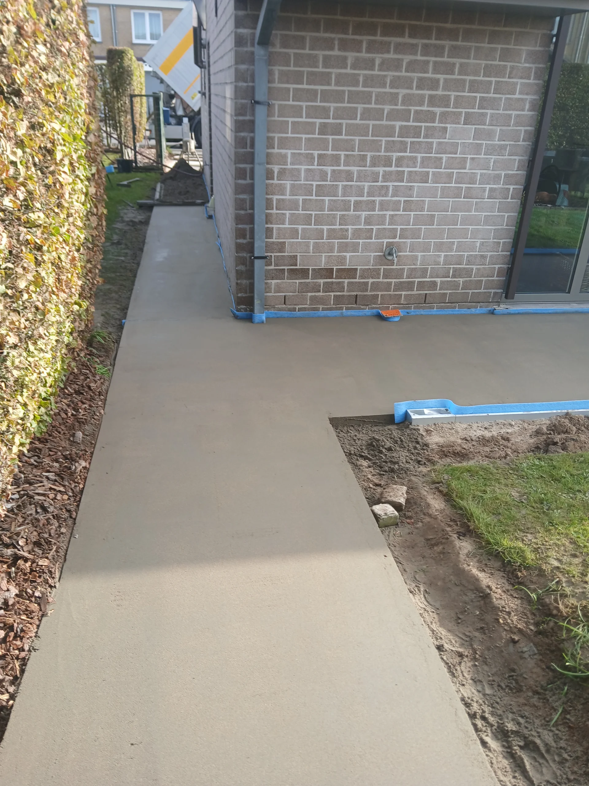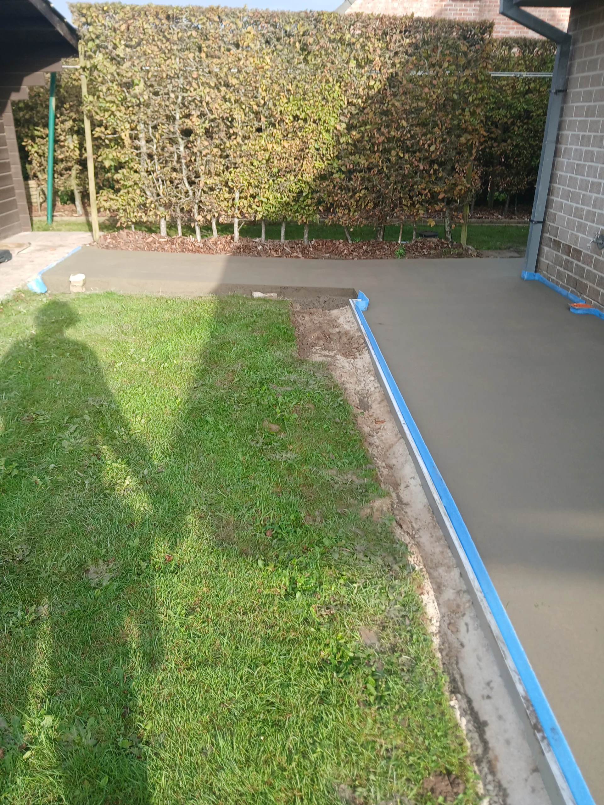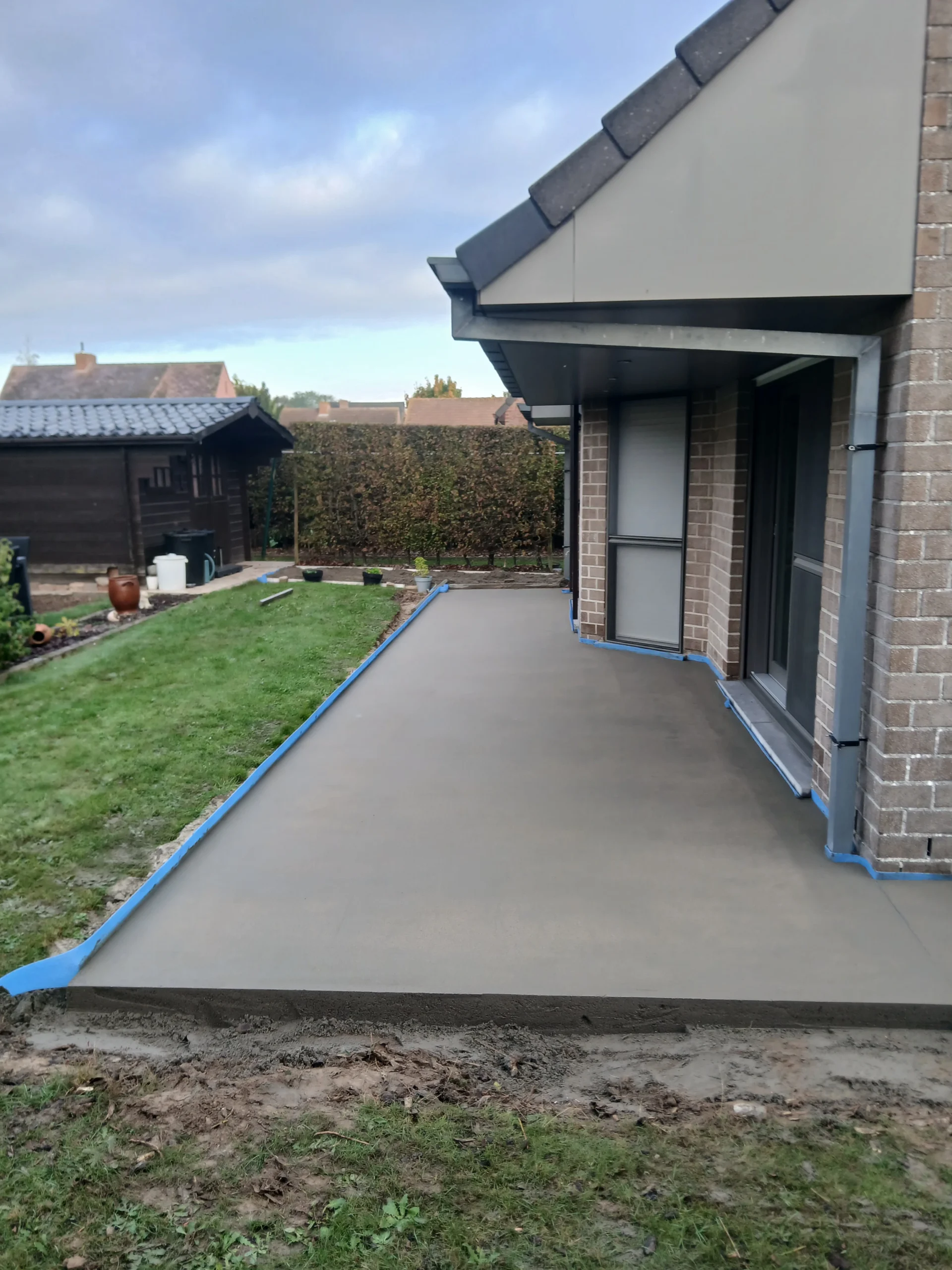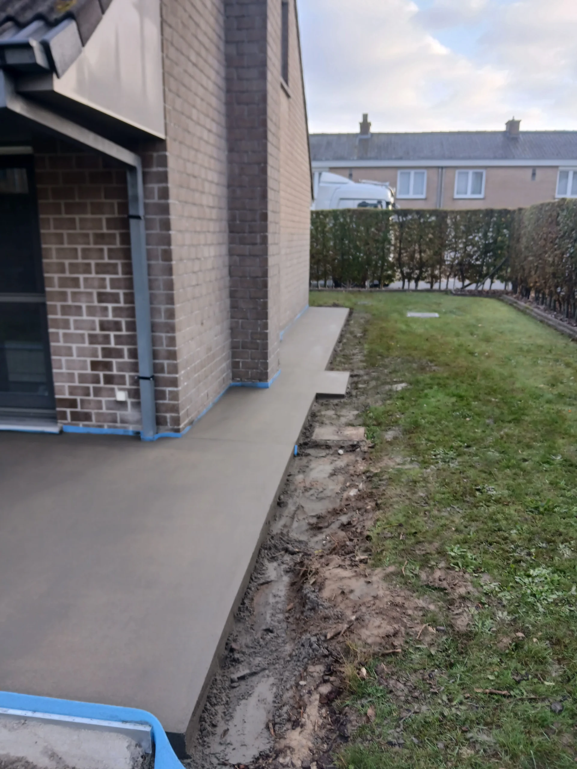 Voor dit project realiseerden we een terras op basis van een gewapende chape, een sterke en duurzame oplossing die ideaal is voor buitengebruik. De wapening zorgt voor extra stabiliteit en voorkomt scheurvorming, zelfs bij temperatuurschommelingen en intensief gebruik.